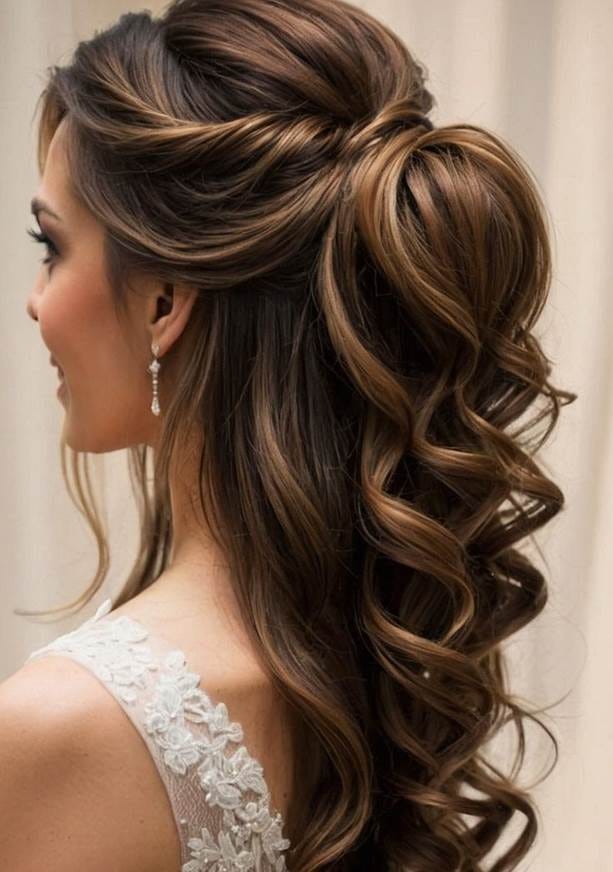 Half-Up Hairstyle: Ένα από τα πιο δημοφιλή στυλ, το half-up χτένισμα σας επιτρέπει να κρατήσετε τα μαλλιά σας ψηλά και ταυτόχρονα να διατηρήσετε μια χαλαρή και φυσική εμφάνιση. Είναι η ιδανική επιλογή για νύφες που θέλουν να συνδυάσουν την κομψότητα με τη φυσικότητα.