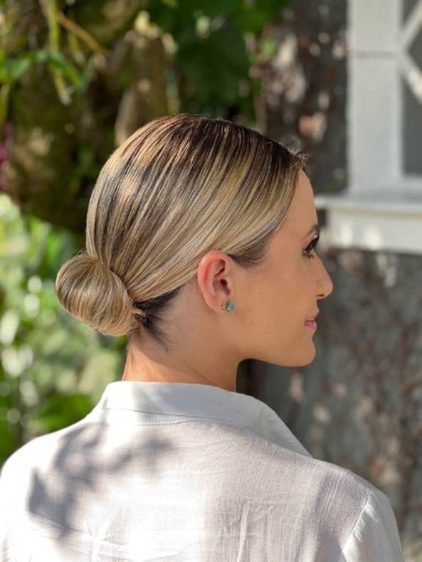 Sleek Look: Ένα καθαρό και μοντέρνο look είναι ιδανικό για νύφες που αγαπούν την κομψότητα και τη λιτότητα. Με ένα sleek χτένισμα, τα μαλλιά σας φαίνονται περιποιημένα και εκλεπτυσμένα, προσφέροντας μια καθαρή αισθητική.