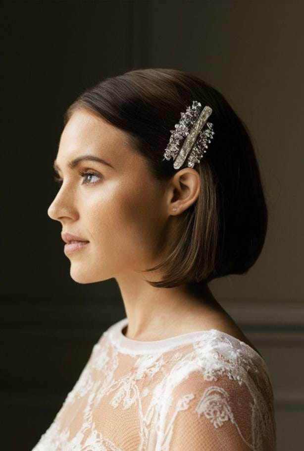 Τα αξεσουάρ για κοντά μαλλιά, όπως τα statement headbands ή τα διακριτικά clips με πέρλες ή στρας, μπορούν να προσθέσουν λάμψη και χαρακτήρα στο χτένισμά σας.